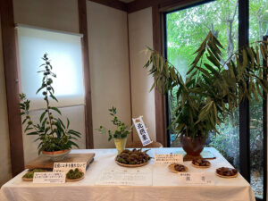 そして9月も下旬。いよいよ大粒で栗の王様とも呼ばれる「銀寄」の出番となり、「栗の実」「いが」「葉のついた小枝」を展示するとともに、「モーパングリ」の「いけばな」も趣向替えしましたので、ご来館いただき、~風流な秋のよそおい~をご堪能ください。